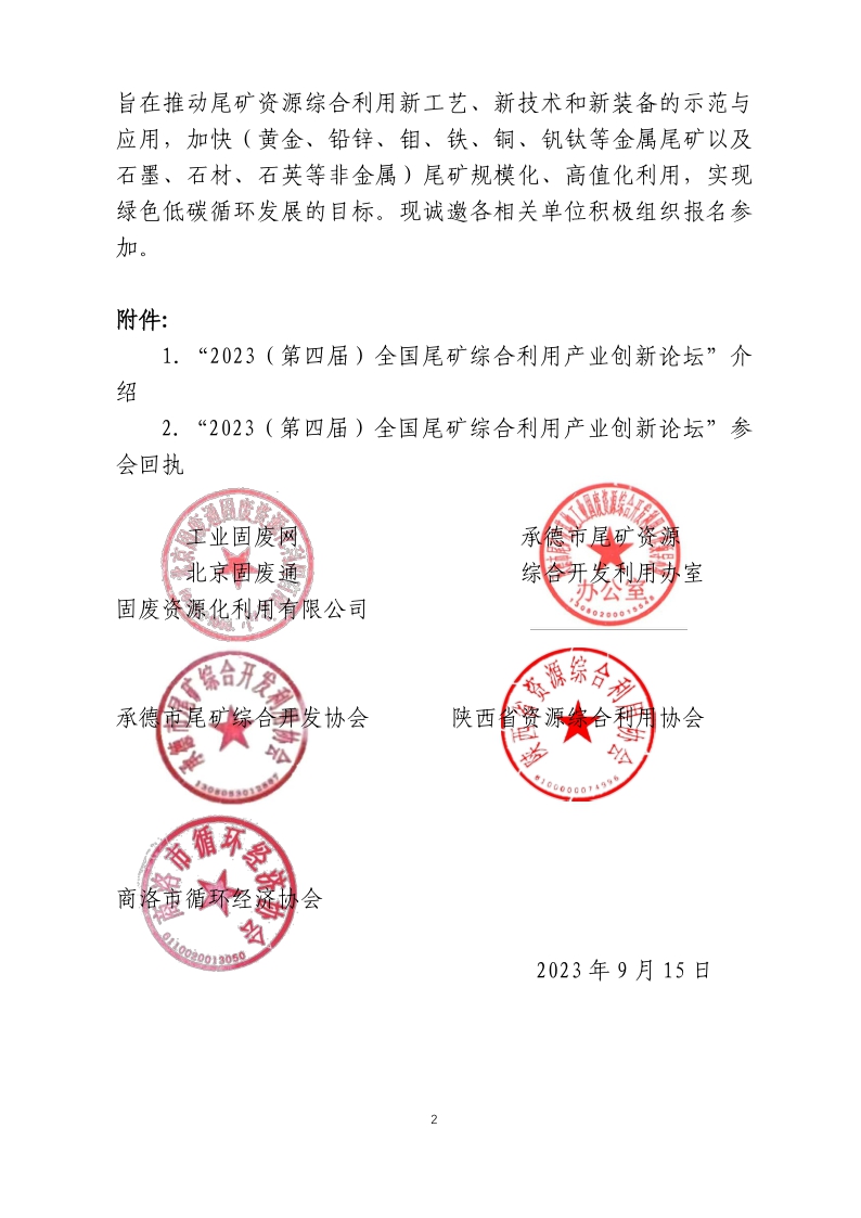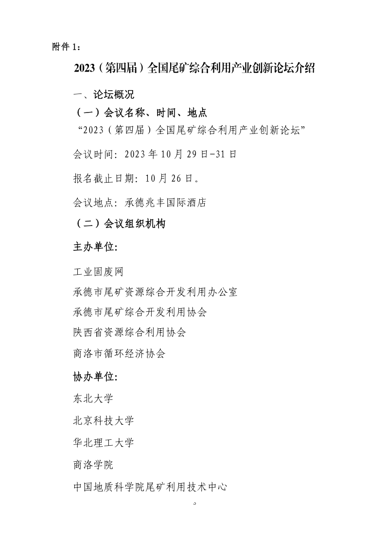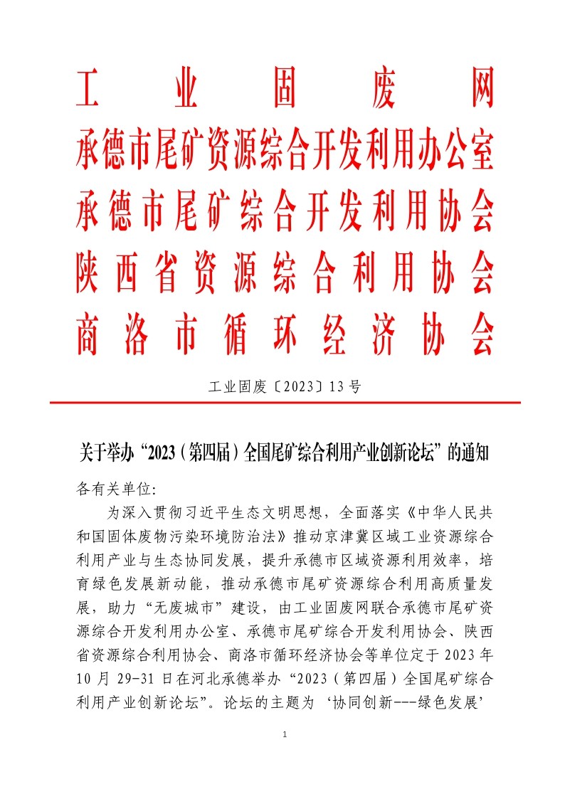 關于舉辦“2023(第四屆)全國尾礦綜合利用產(chǎn)業(yè)創(chuàng)新論壇”的通知